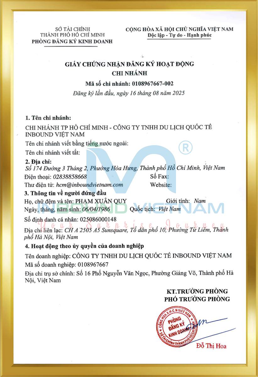 Pháp lý minh bạch, địa chỉ rõ ràng: CÔNG TY TNHH DU LỊCH QUỐC TẾ INBOUND VIỆT NAM